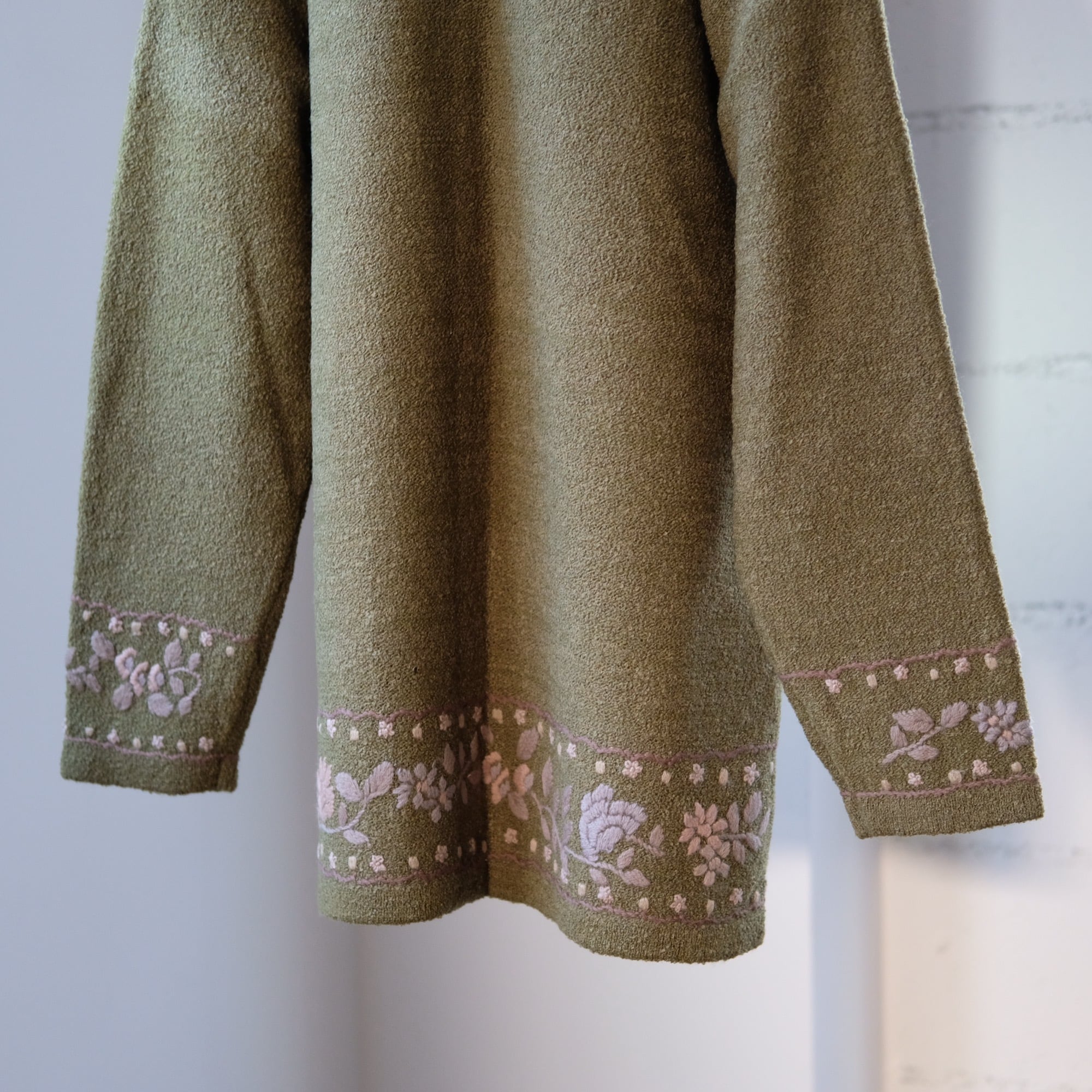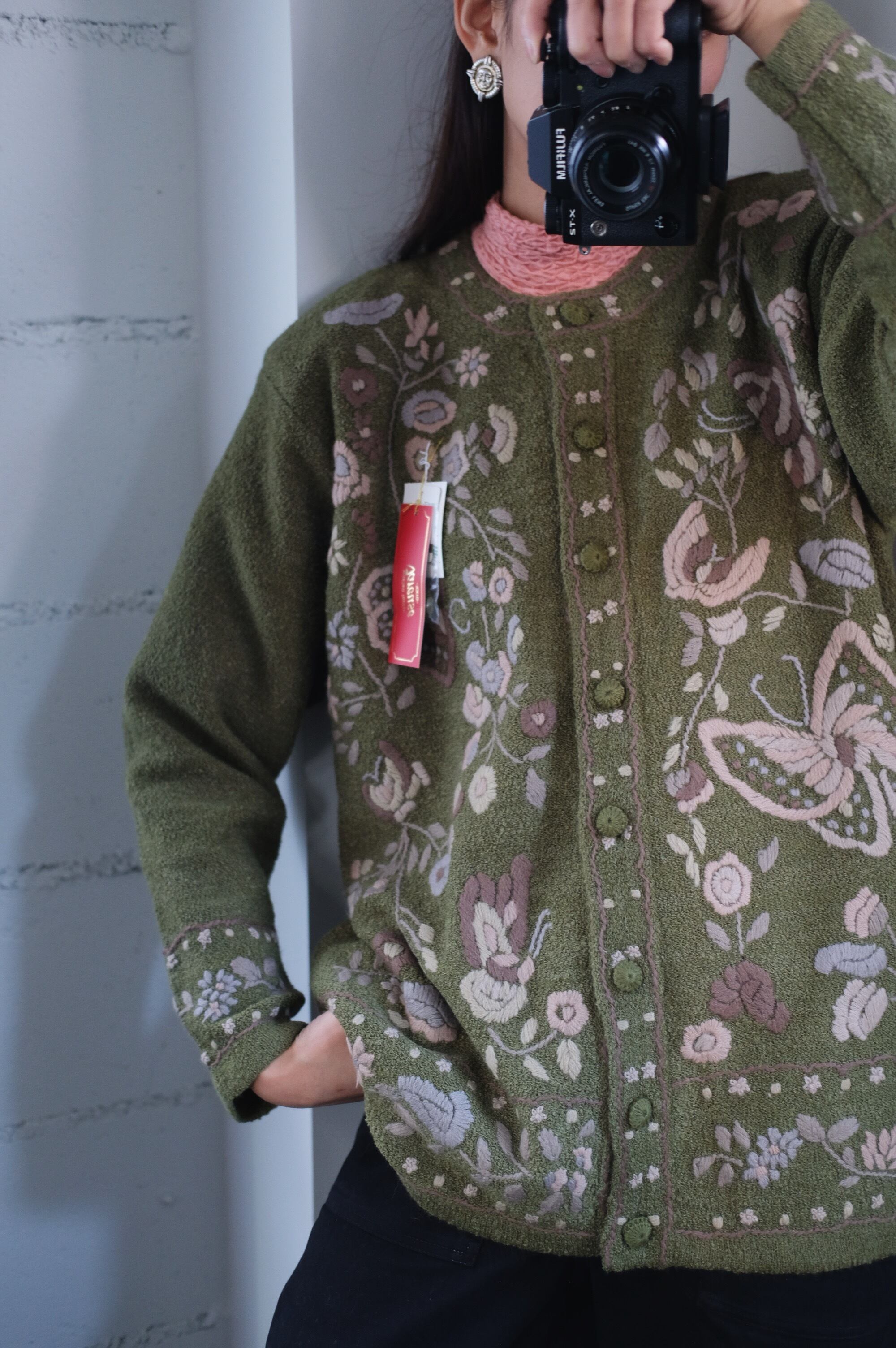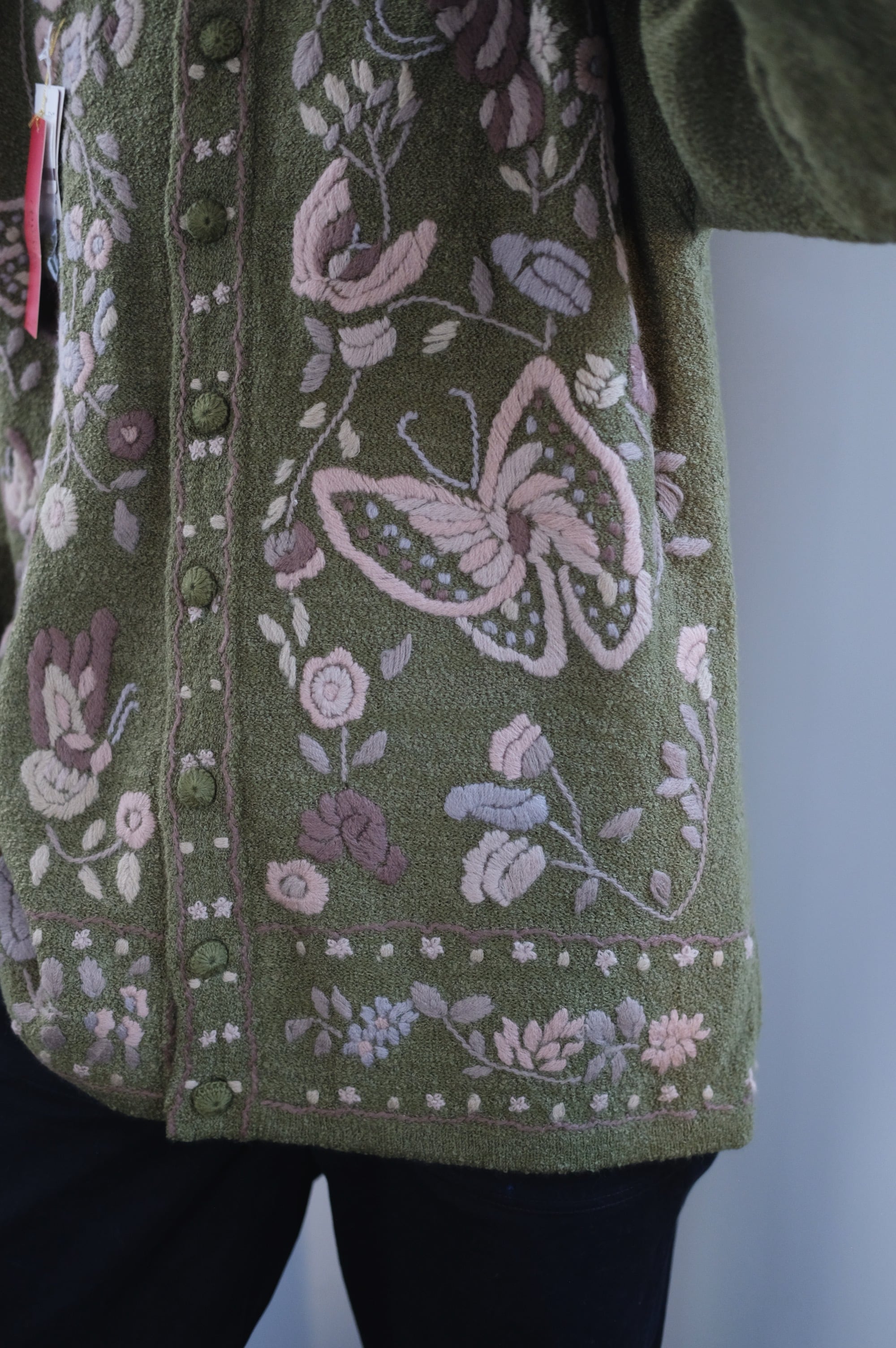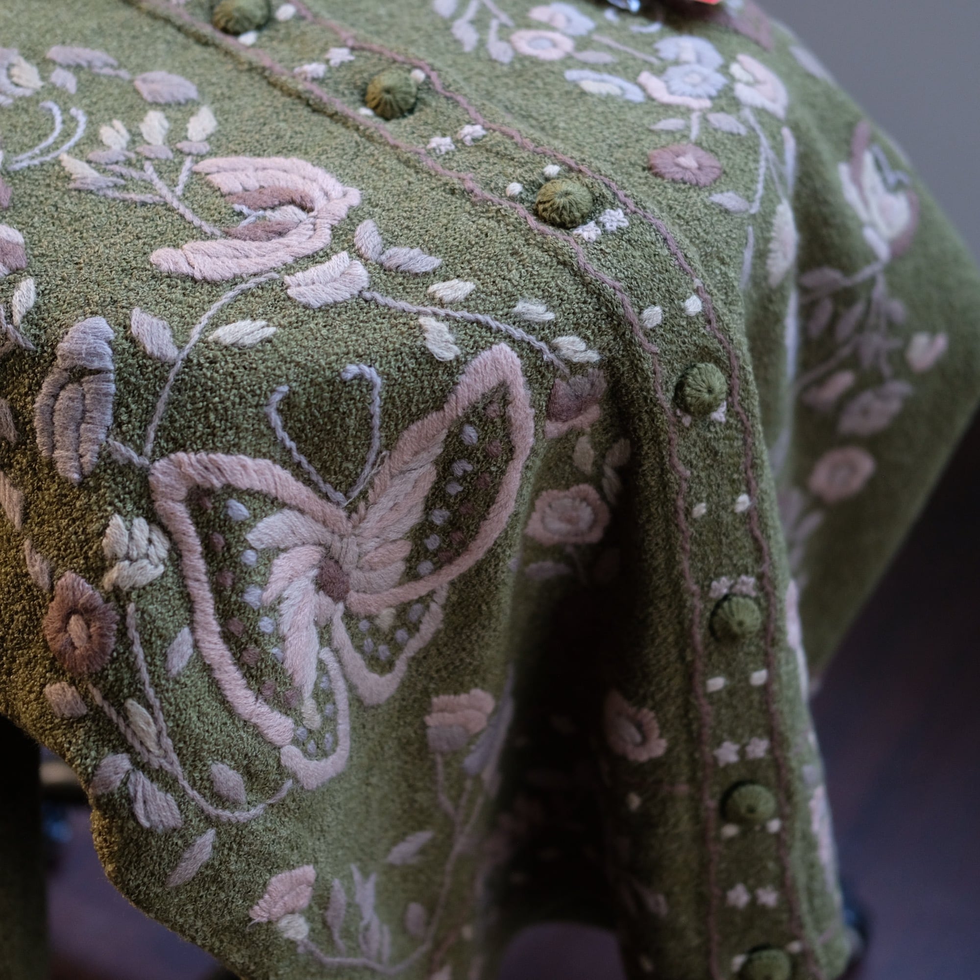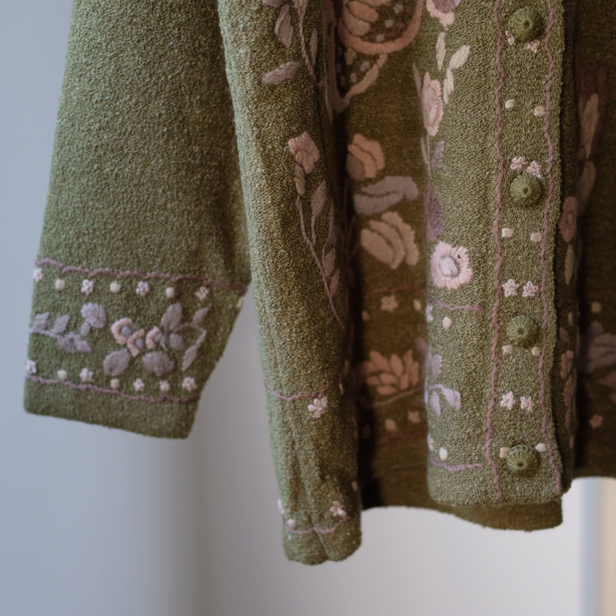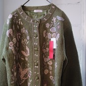 vintage olive embroidered cardigan