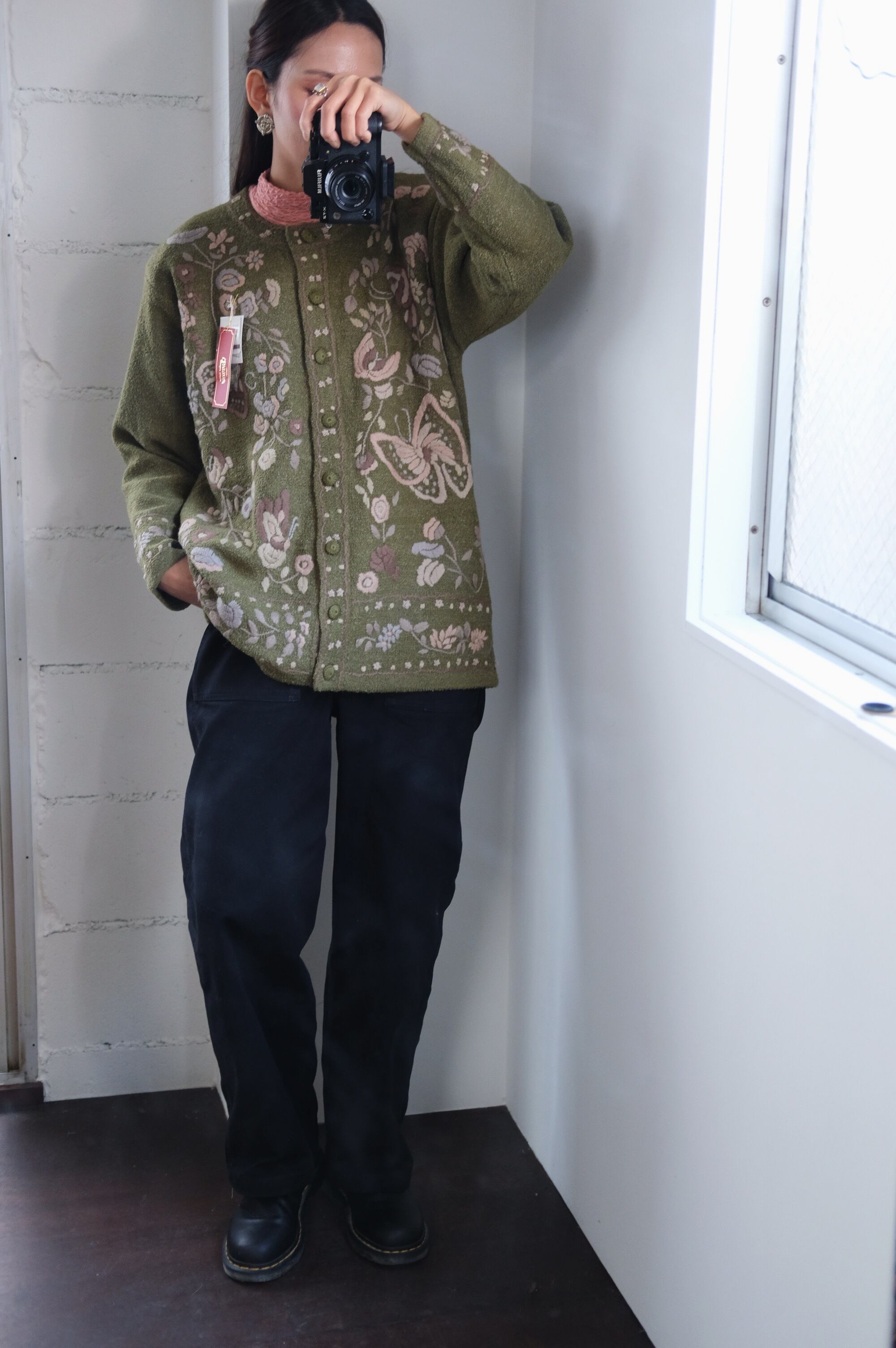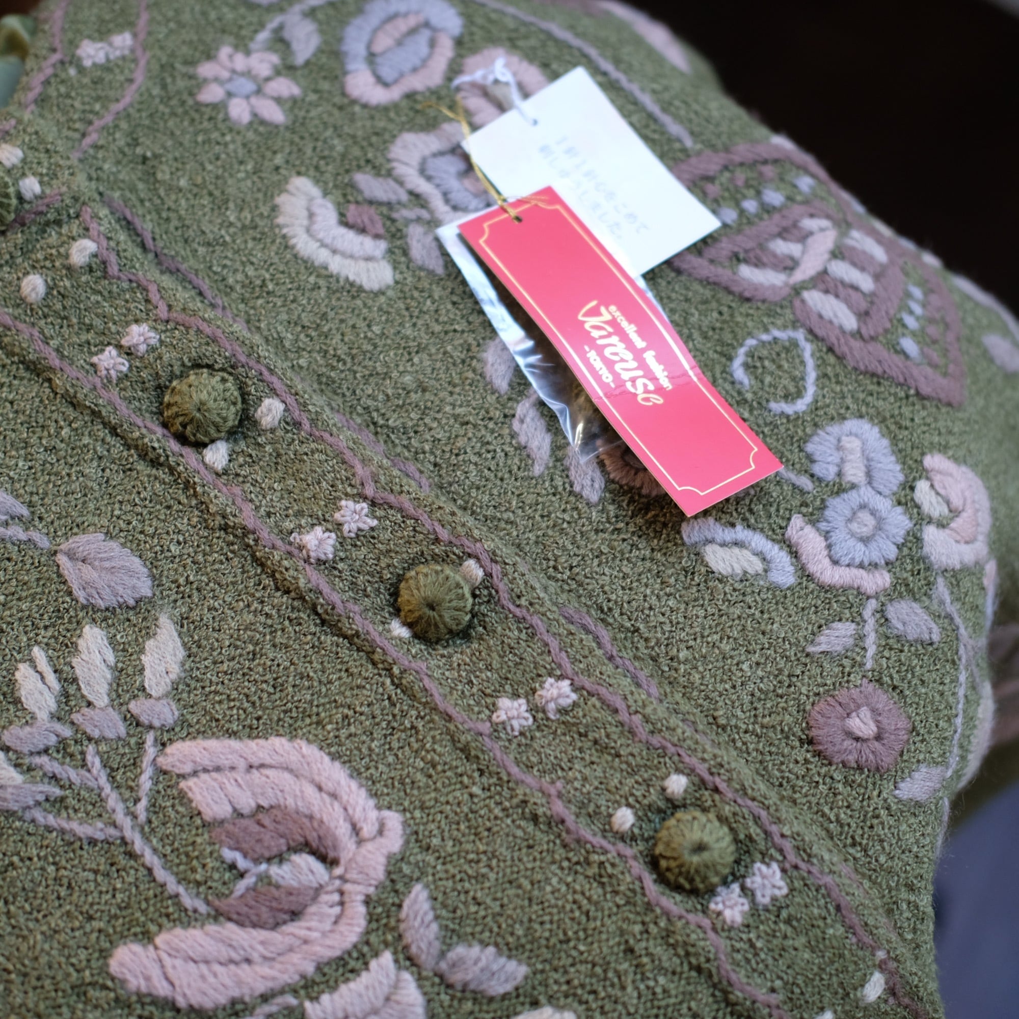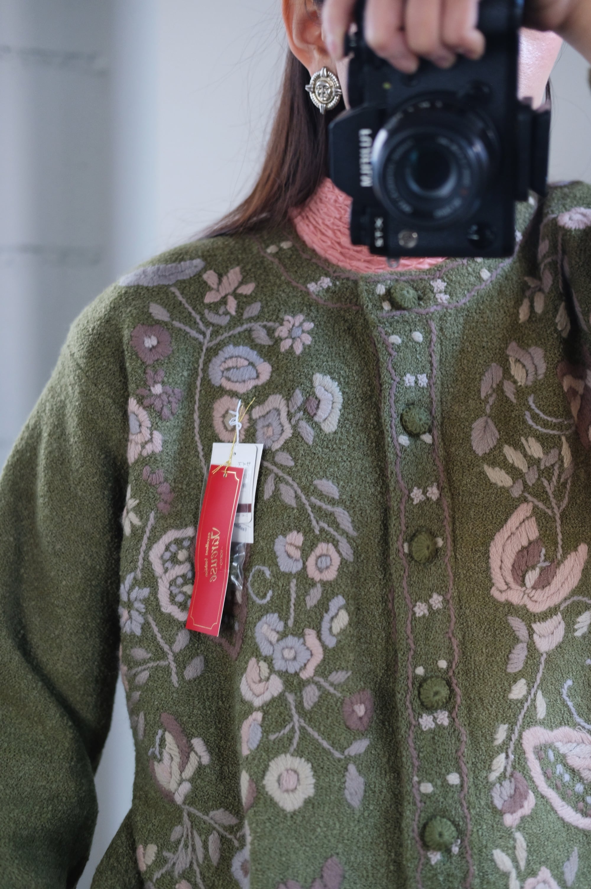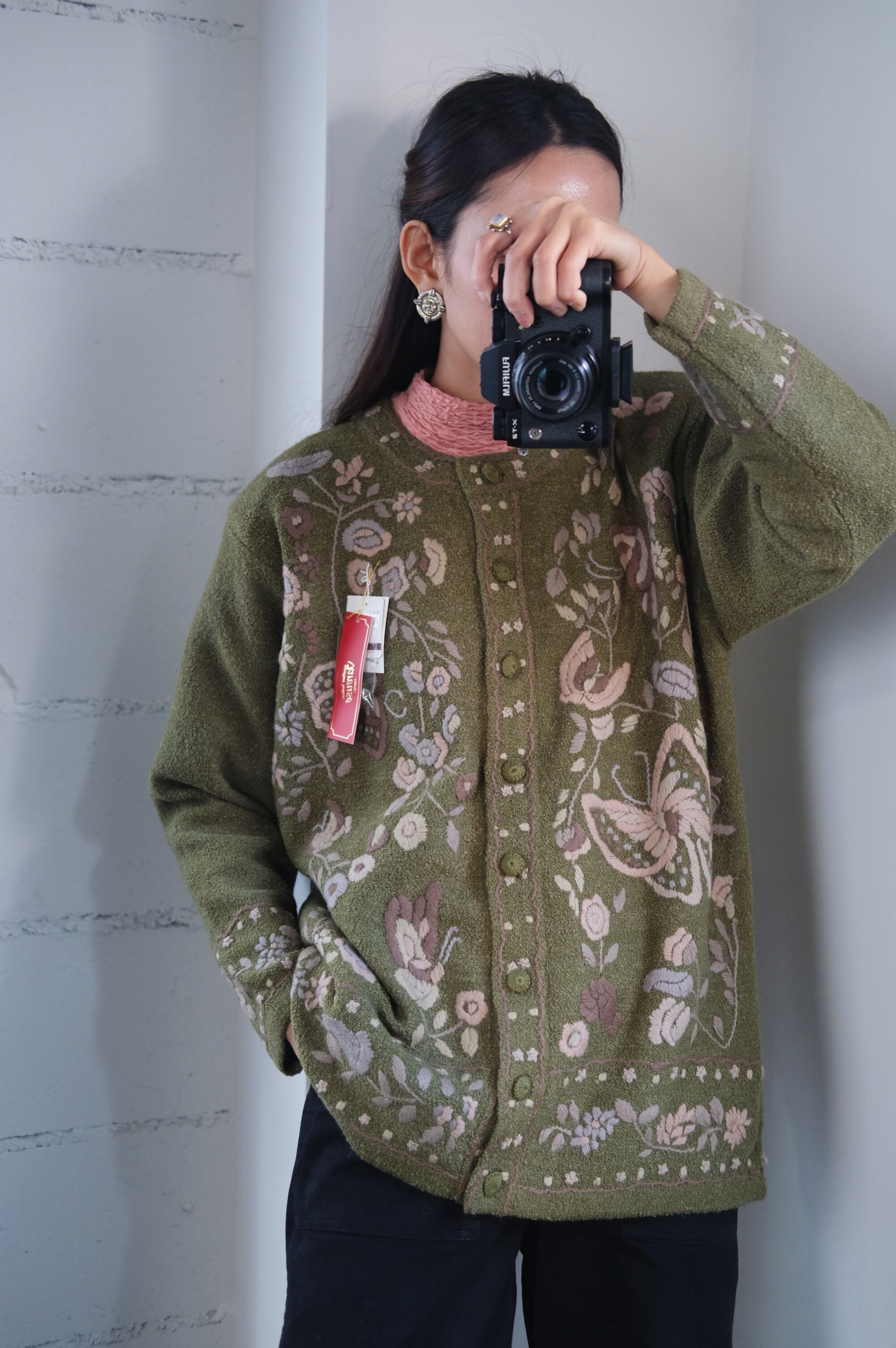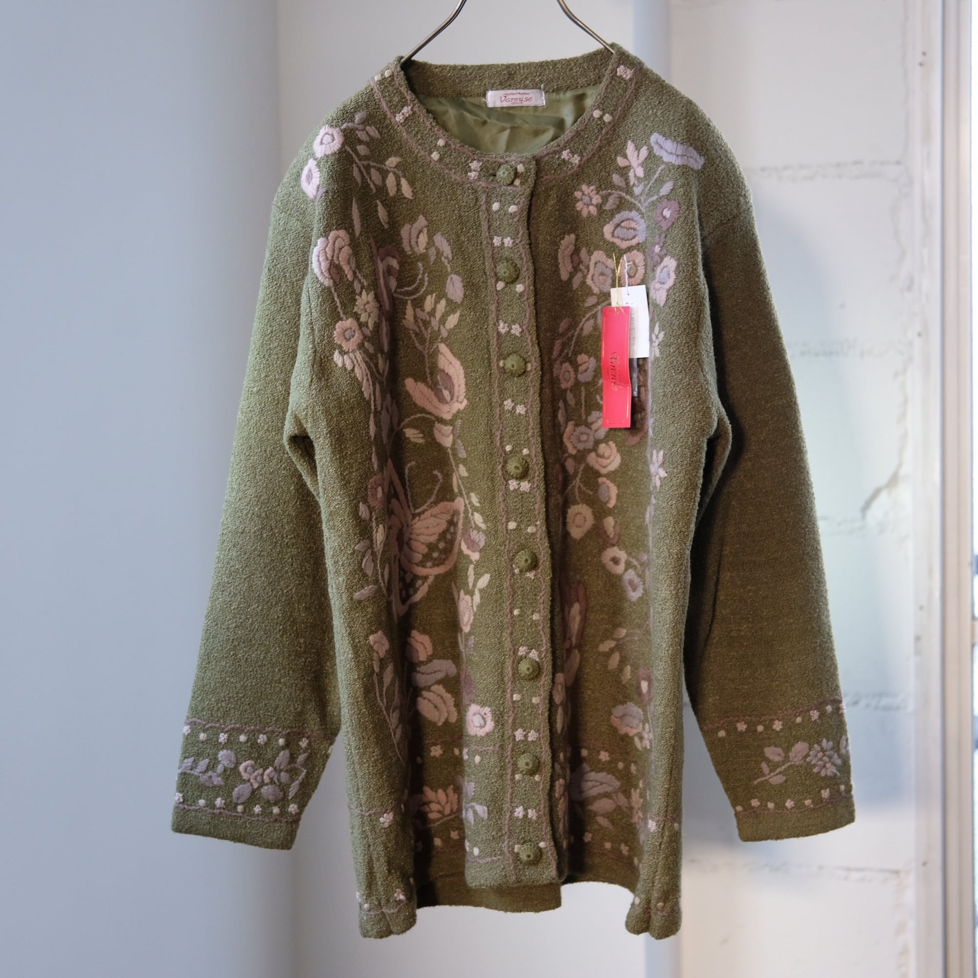 vintage olive embroidered cardigan